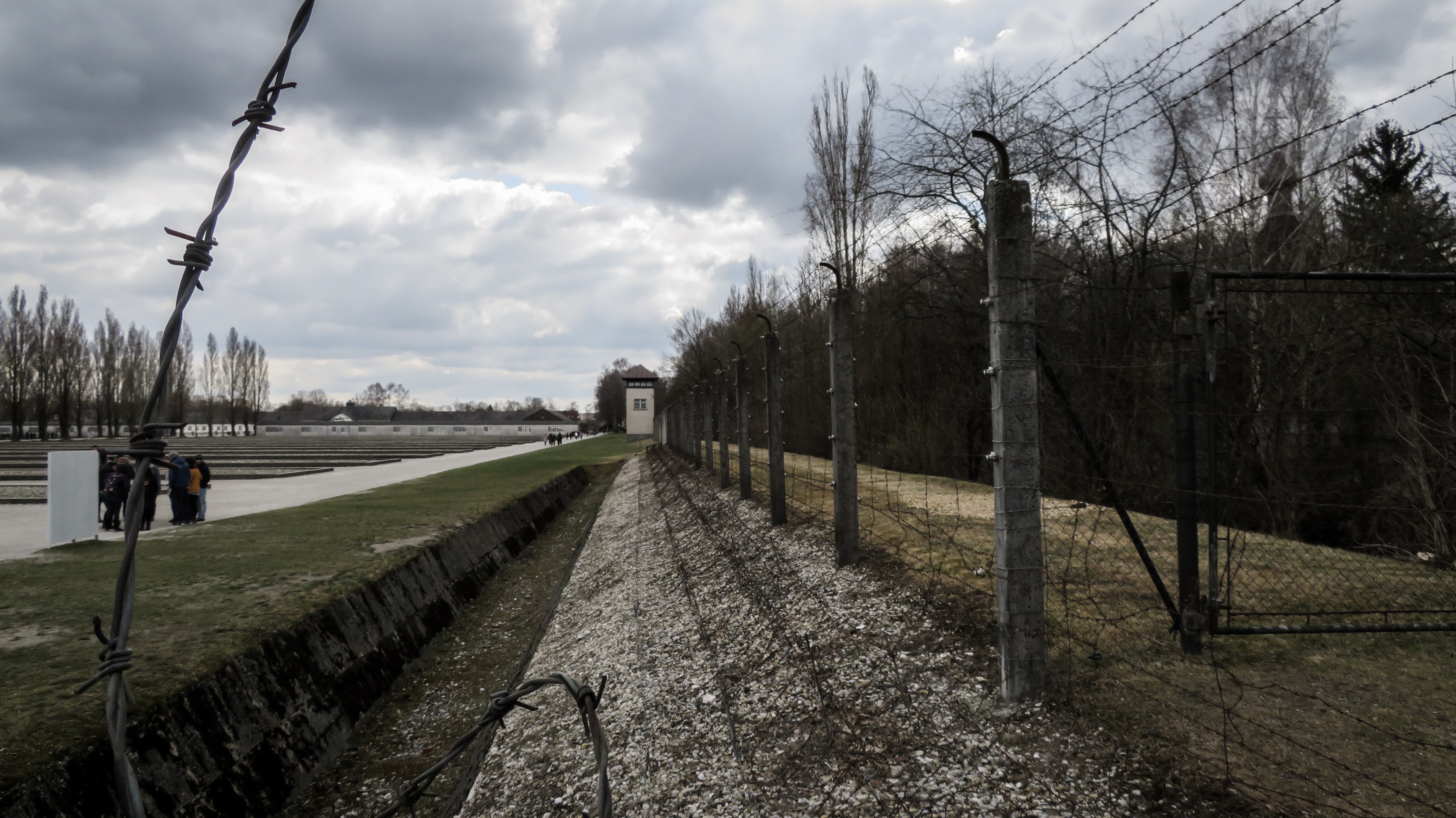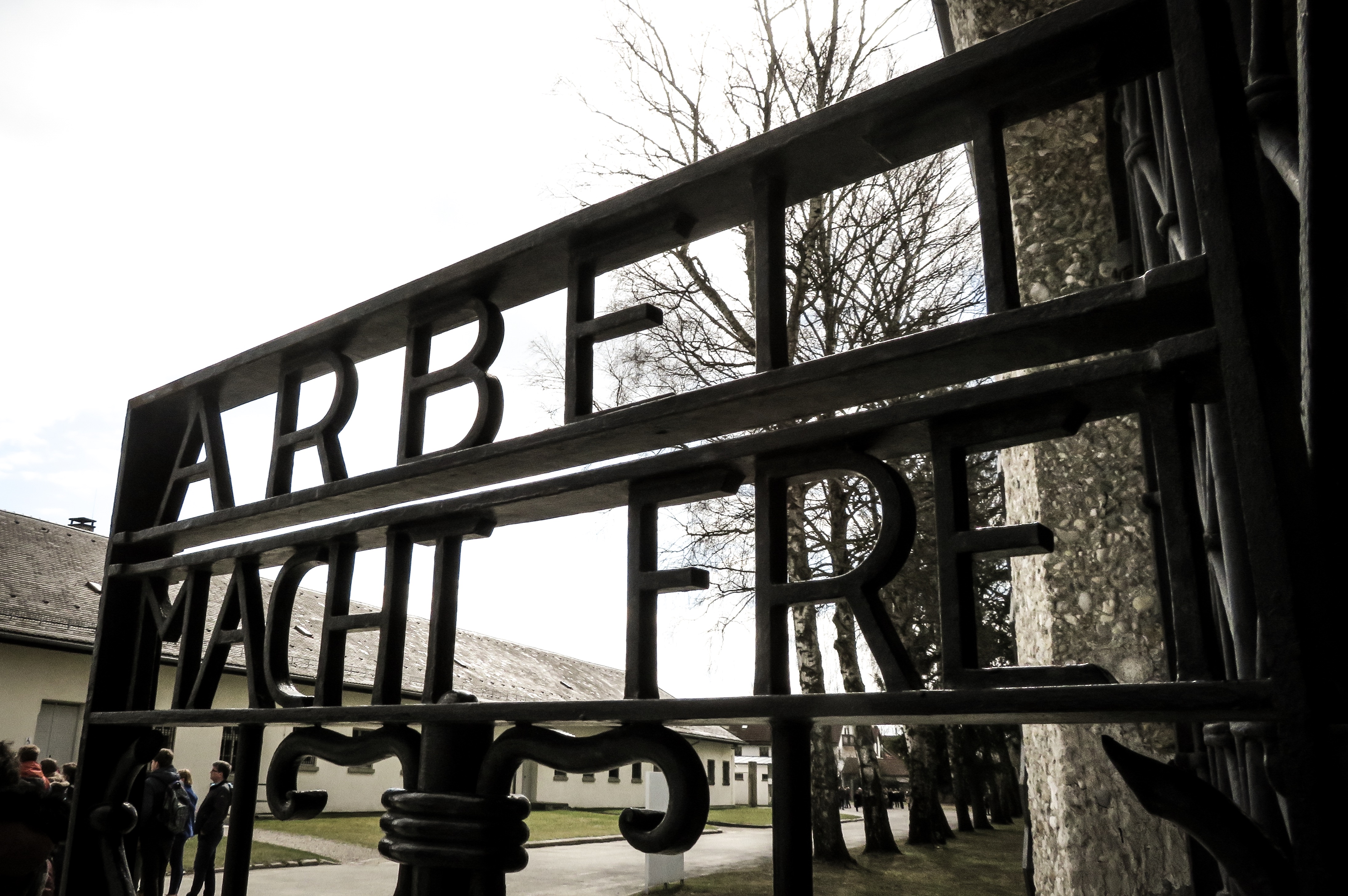 Het is doodstil in de bus als we langs het kamp rijden. De hekken zijn laag genoeg om er vanuit de bus overheen te spieken. Op een rare manier zijn we allemaal benieuwd naar wat ons te wachten staat. De enige weg naar binnen is via de poort het Jourhaus. Op de gietijzeren poort staat de bekende zin: ‘Arbeit macht Frei’.