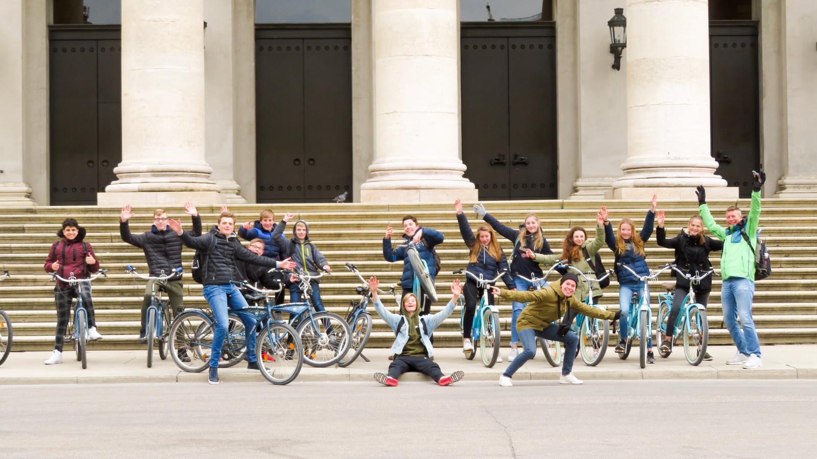 We zijn er! Na een rustige maar toch korte nacht in de bus komen we aan in München. We wandelen een behoorlijk eind naar de Dom toren waar sommige een lichtje branden voor dierbaren. We stappen gelukkig vrij snel daarna op de fiets en binnen een paar uur tijd fietsen we langs de grootste hotspots. In een groot park spotten we een groep surfers. Wat gaaf dat dit zo midden in de stad mogelijk is. Het water stroomt zo snel dat er een golf ontstaat en er staan wel 15 surfers die achter elkaar hun tricks laten zien.